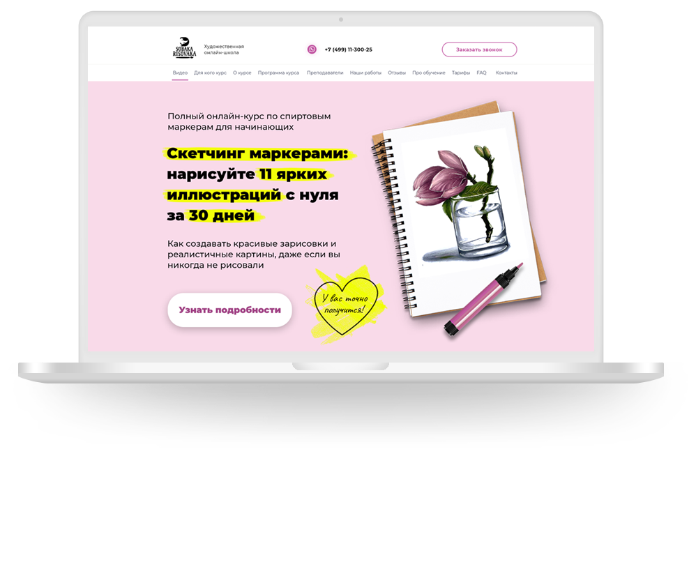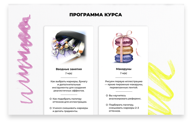 Прототип посадочной страницы для курса по рисованию маркерами