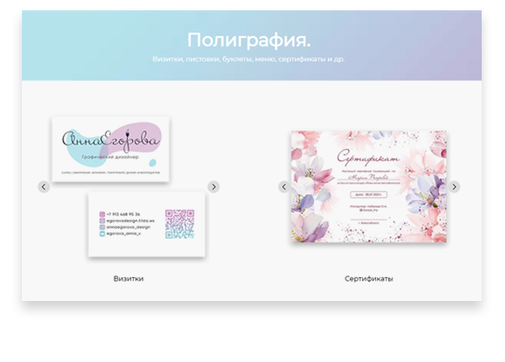 Сайт-портфолио для графического дизайнера на базе платформы Tilda
